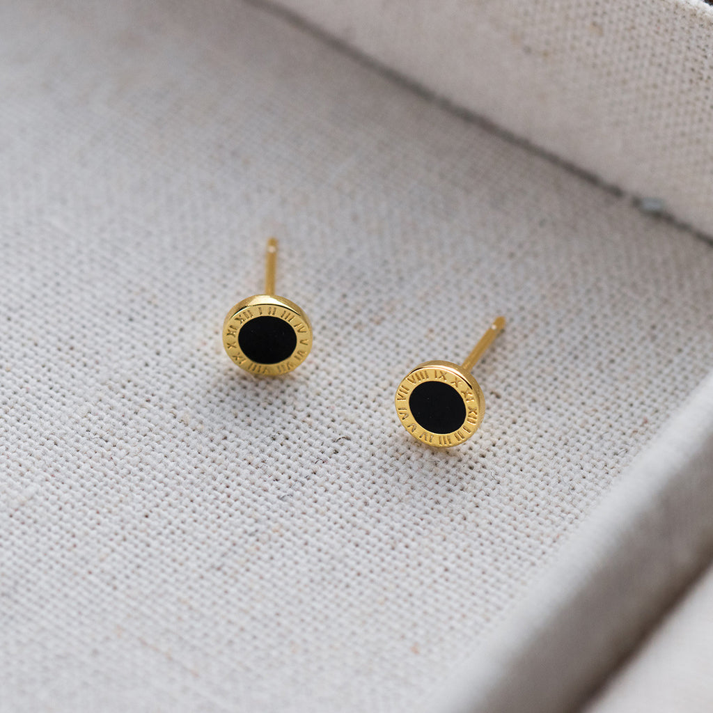 BÔNG TAI HÌNH TRÒN ĐEN PHỐI VIỀN VÀNG LA MÃ NHỎ XINH