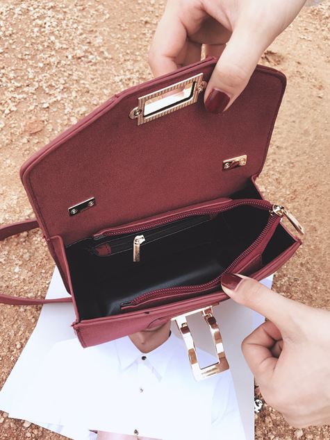 - Dây đeo chéo kết hợp phần dây da và kim loại