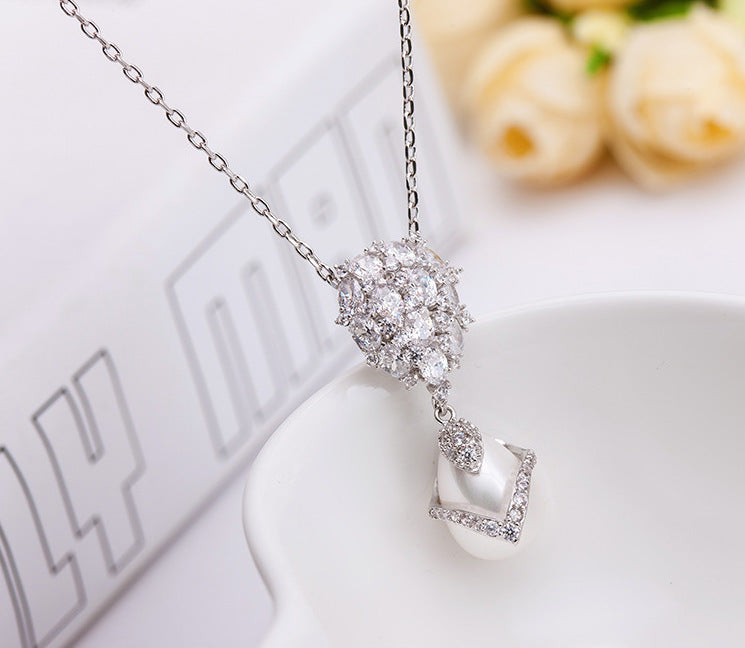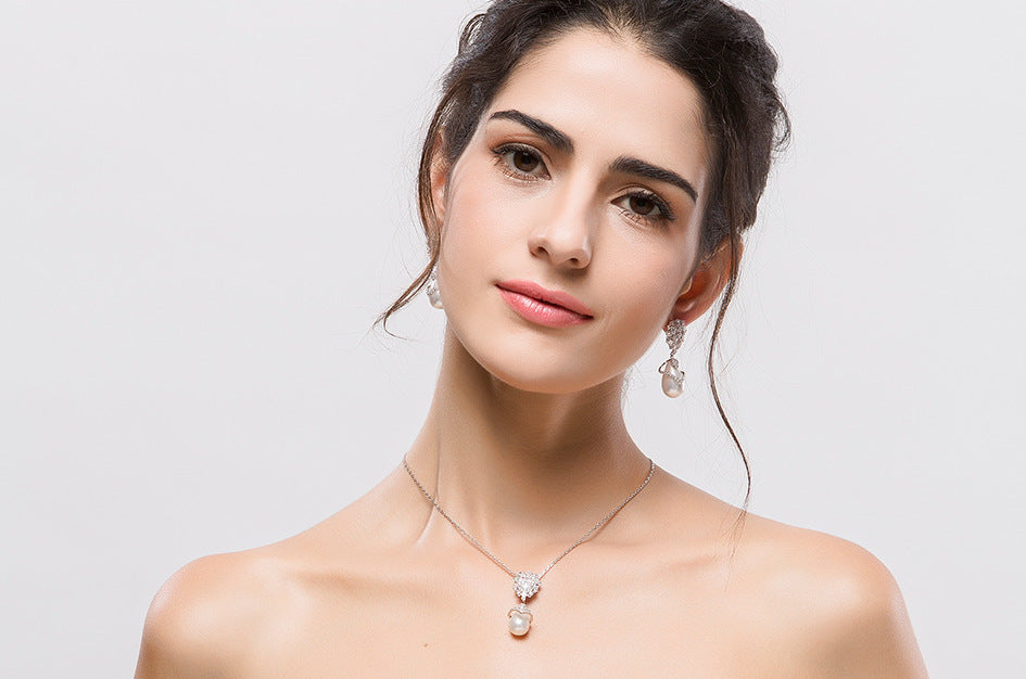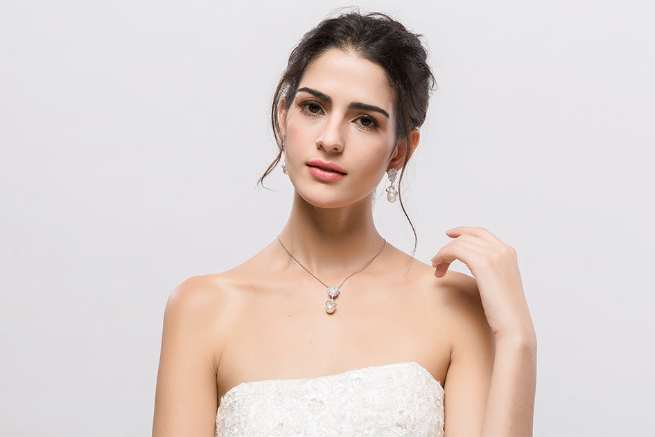 Những viên đá lấp lánh kết hợp với hạt ngọc trai hình giọt nước làm điểm nhấn cho sản phẩm.