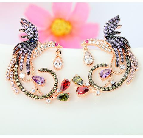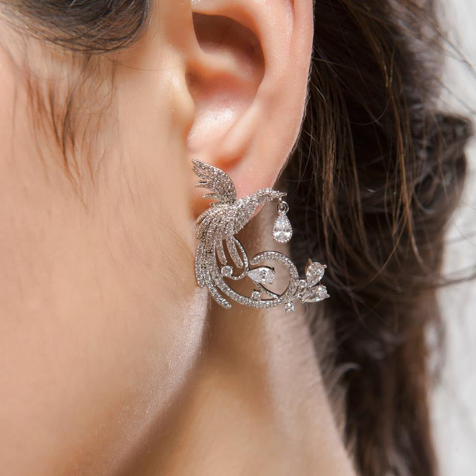 Bông tai phượng hoàng đại các đính đá là thiết kế khá đặc biệt khi lấy ý tưởng từ phượng hoàng, loài chim tượng trưng cho sự cao quý. Nhìn vào mẫu thiết kế bông tai này, các cô gái của chúng ta không thể không trầm trồ trước sự tinh xảo của nó.